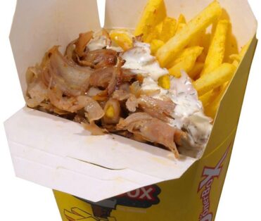 1 Hackfleisch, 1 Lamm, 1 Hähnchenspieß mit gegrillten Tomaten und Peperomi + Pommes ODER Reis