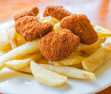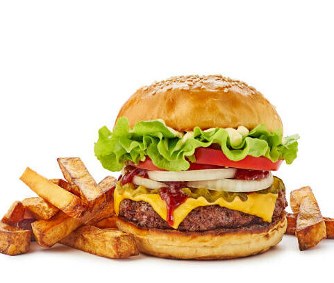2 Hähnchenkeule ohne Knochen mit gegrillten Tomaten+ Salat mit Pommes oder Reis