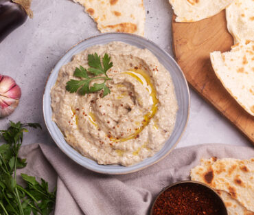 Lamm und Hackfleischspieß, gegerillte Tomaten, Peperonie und Salat